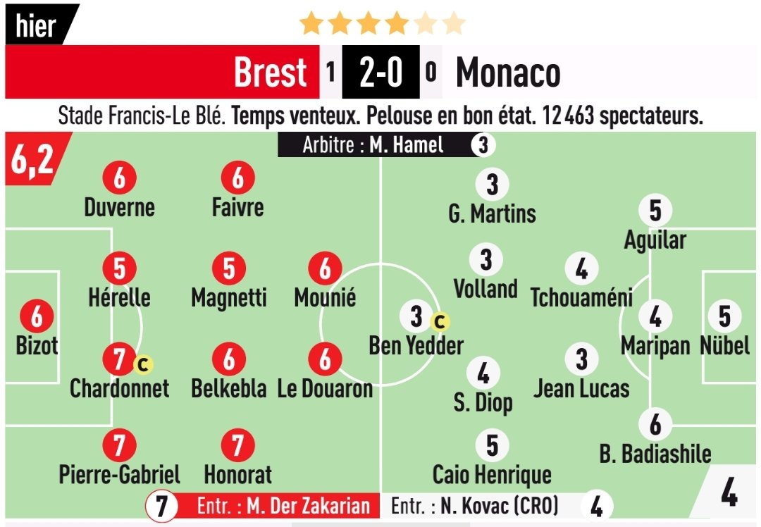 Football Football Les Notes Du Sb29 Contre Monaco Lasne Et Le Douaron Au Rendez Vous Le Telegramme